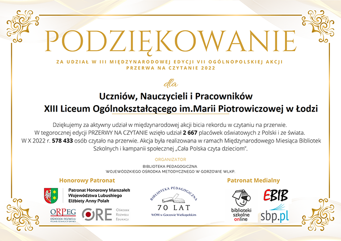 Nagrodzonym, wyróżnionym serdecznie gratulujemy, wszystkim bardzo dziękujemy za ten pracowity, intensywny rok! Odpoczywajcie i do zobaczenia po wakacjach.